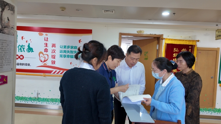 韩处长与各位领导调研中,深入安宁缓和医疗病区、康复住院病区、长护气切护理区域、失智专区、失能专区以及颐养区,详细了解医保、医疗及民政相关政策,认真听取我院机构及居家养老医养结合服务模式,对不同状态的老人提供以精神文化娱乐、生活照护、康复护理、医疗支持、安宁缓和医疗托底的以人为本的全人照护服务模式,为养老老人或住院患者带来的便利,并与我院负责人等进行广泛探讨。调研中,韩处长一行特别关注安宁缓和医疗工作的推进情况,我院工作人员从环境布置、工作流程、医护社核心团队服务内容、多学科工作模式、服务效果等各方面,以及目前我院安宁缓和医疗所取得的成效向调研领导们进行详细汇报。