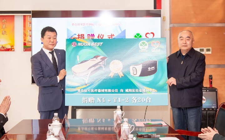 2025 年 10 月 29 日上午,青岛丽可医疗器械有限公司带着对老年群体的深切关怀,向桃花源城阳区社会福利中心捐赠 20 台 N4 自动温热组合医疗器、20 台 T1-2 腹部温热盖,以实际行动践行企业社会责任,为千名入住老人传递大爱。城阳区民政局、城阳区总工会、城阳区街道办事处、城阳区红十字会、城阳区大北曲前社区、青岛阳光救援队等单位的领导共同出席了此次捐赠活动。